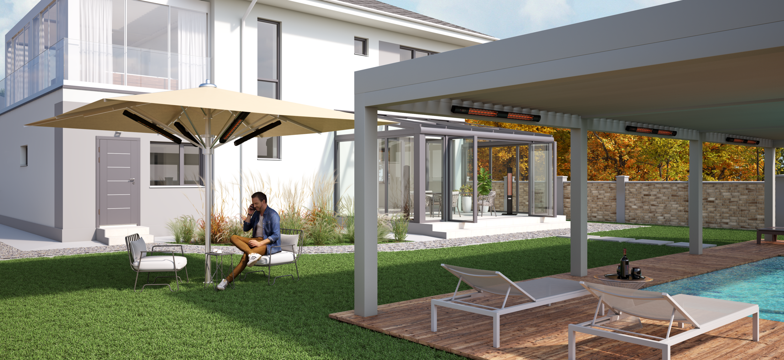 - Besonders geeignet für Glasbauten, Überdachungen, in Kombi mit Sonnenschirmen, Aussenspas und Gastronomie