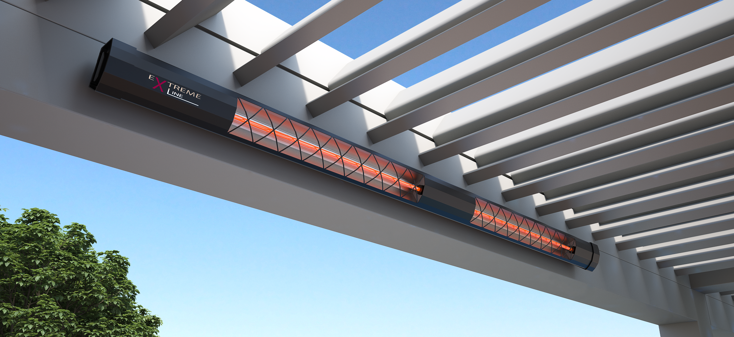 Der ExtremeLine Carbonstrahler überzeugt durch Design und effiziente Leistung. Durch die schlanke Bauform, den geringen notwendigen Montageabständen, das Schutzgitter in Gehäusefarbe und die abgestimmte Gerätelänge, setzt der HeatFlare Carbon neue Maßstäbe. Durch die integrierten Steuerungssysteme kann der HeatFlare Carbon, sowohl per Funk, per App und auch per SmartHome angesteuert werden.