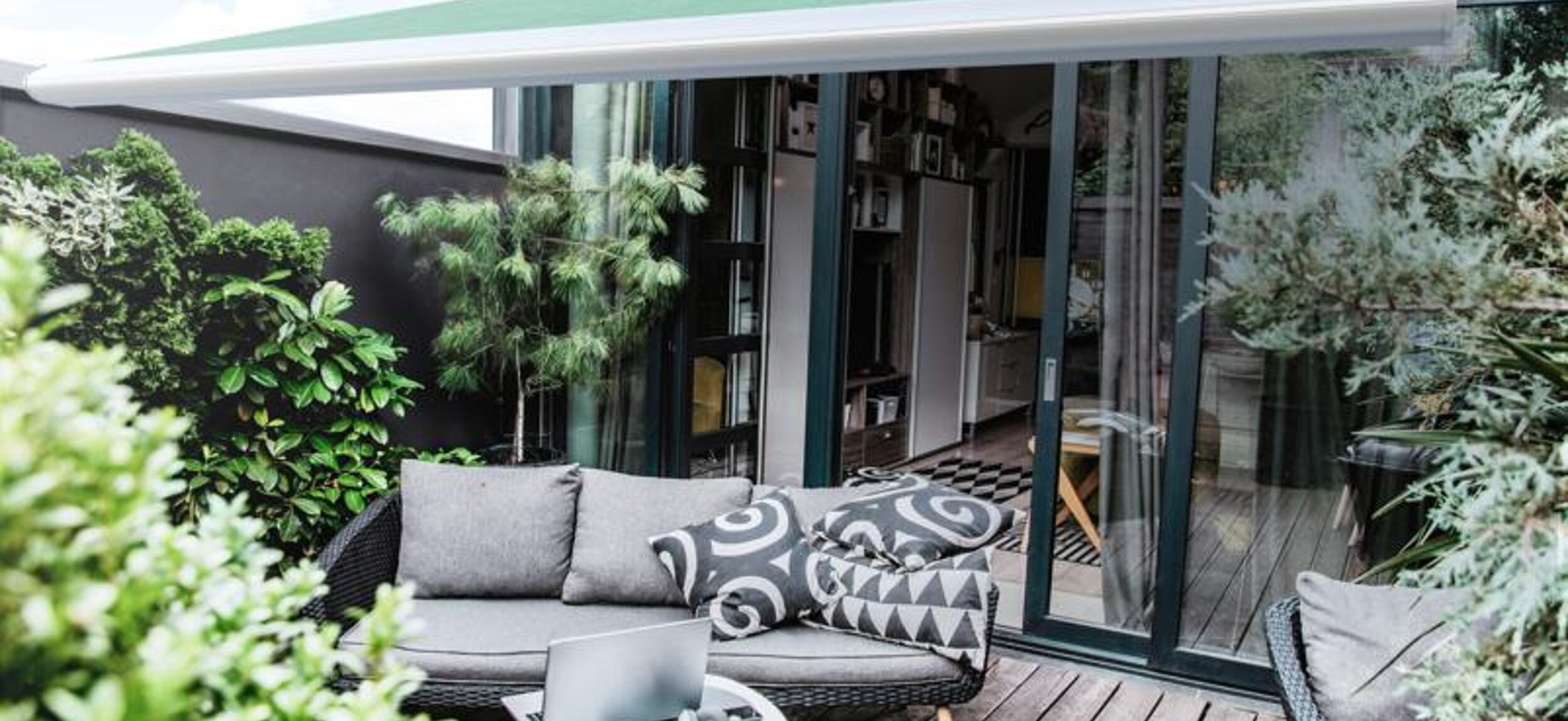 Ein stimmiges Wohlfühl-Ambiente ist dank dieser Kassetten-Markise garantiert. Die kompakte Aufmachung verspricht eine unauffällige Integration in die Gebäudefassade und verschattet trotzdem große Flächen stilvoll.