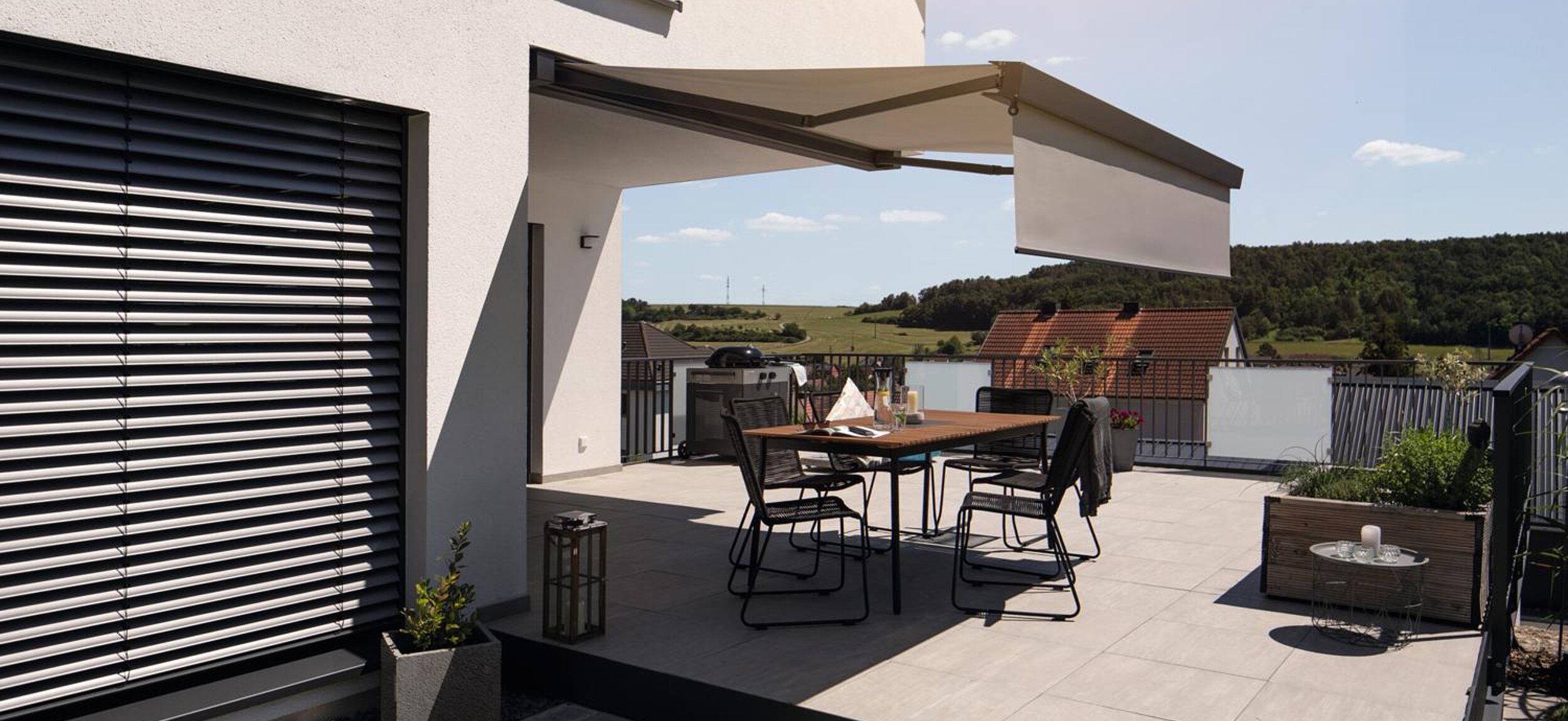 Genießen Sie auch auf kleinsten Terrassen oder Balkonen optimalen Sonnenschutz. Diese Kassetten- Markise ist besonders für kleine Flächen perfekt geeignet und spart dabei nicht an Flexibilität und Design. Sie ist jetzt auch mit Volant-Rollo verfügbar – für ungestörte Wohlfühlmomente auf Ihrer Terrasse.