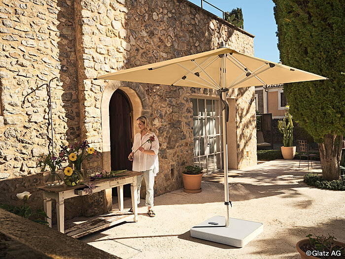 - Der Jumbrella XL bietet 8 verschiedene Modellgrößen von 25 m2 bis 49 m2 – in runden, quadratischen und rechteckigen Varianten mit bis zu 7 m Seitenlänge.