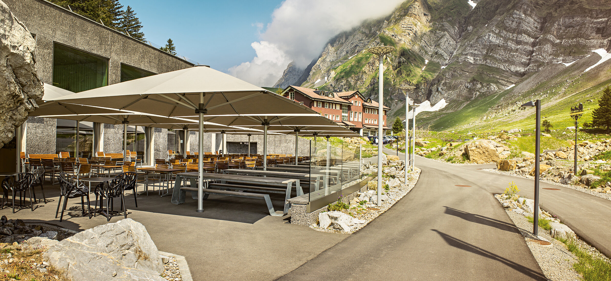 - Ehrliche Schweizer Qualität und Optionen wie Heizung oder Beleuchtung zeigen, warum man ihn überall trifft, wo das Leben auf grossen Terrassen pulsiert.