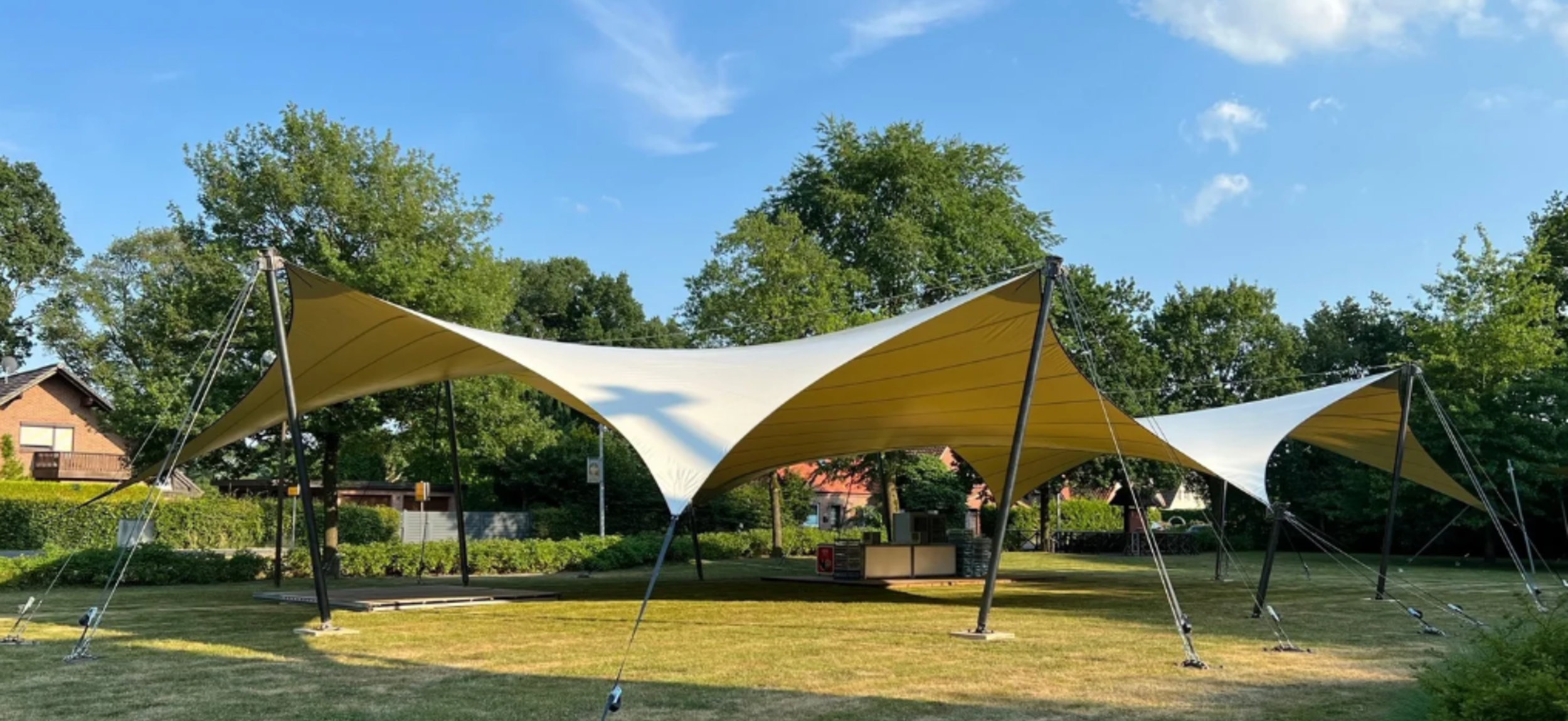 - Schützt zuverlässig vor Sonne und Regen, sodass Veranstaltungen bei jedem Wetter stattfinden können.