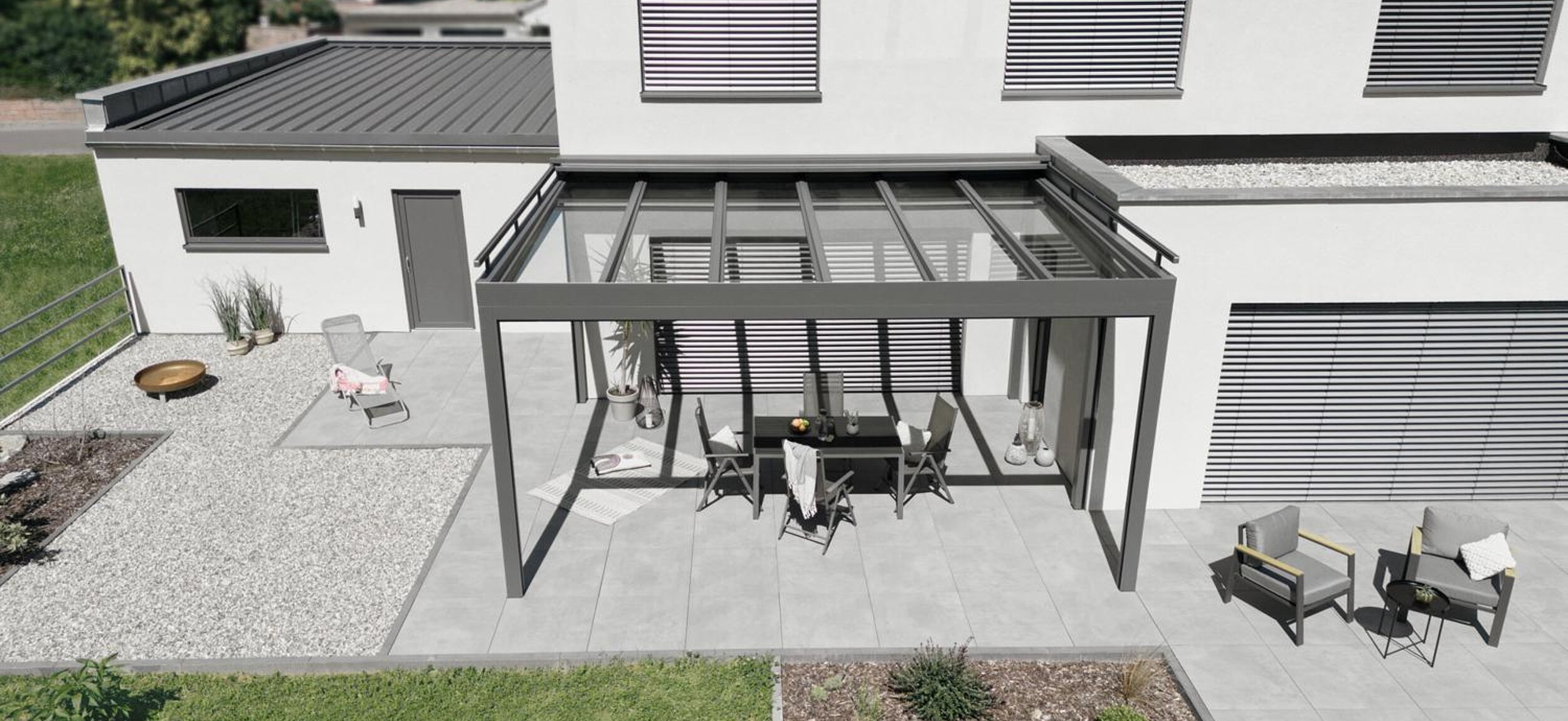 Dank der transparenten Glaseindeckung ermöglicht das kubische Glasdach einen traumhaften Blick. In Kombination mit einer innen- oder außenliegenden Wintergarten-Markise Climara ist zudem ein wirksamer Sonnenschutz garantiert. Freuen Sie sich auf einen ganzjährig wettergeschützten Lieblingsplatz mit viel Licht.