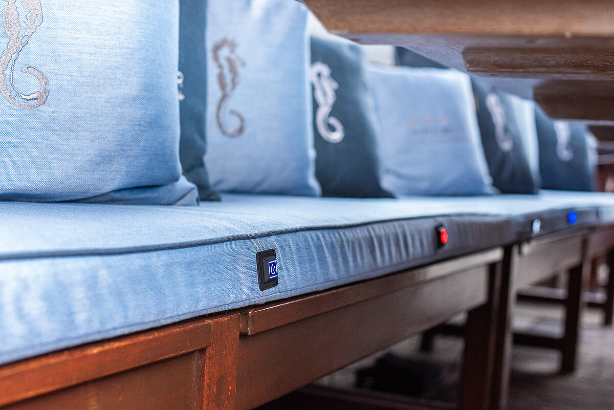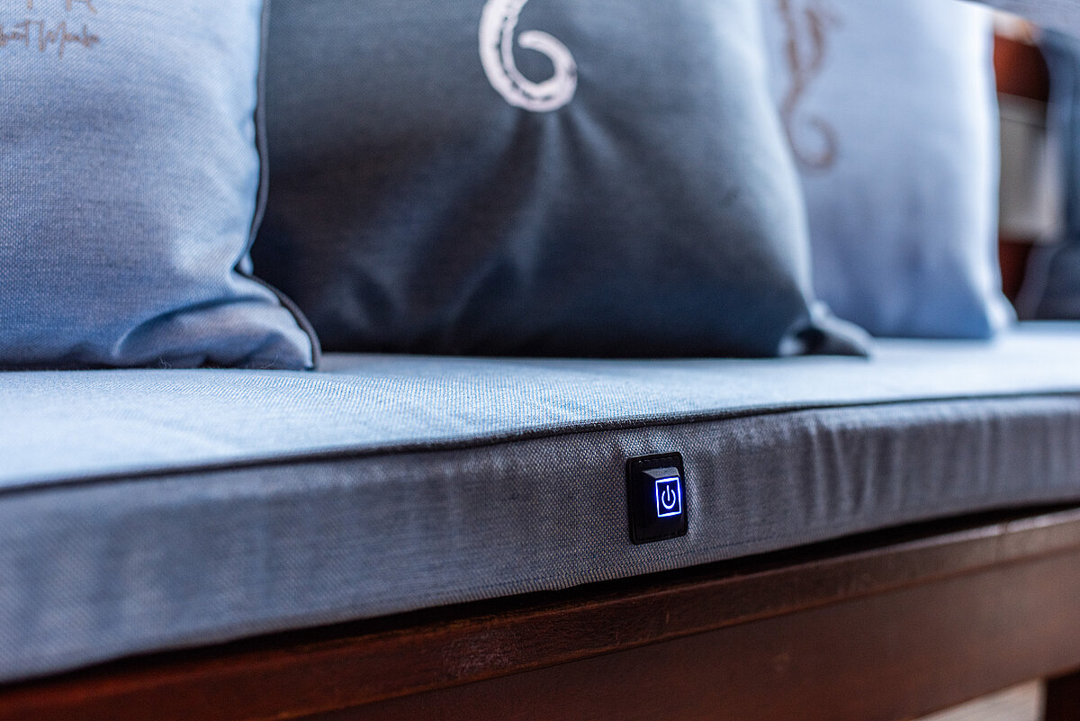 Die Kombination aus dezentem Design und funktionaler Heiztechnik macht die Sitzkissen zur idealen Ergänzung für hochwertige Outdoor-Möblierungen.