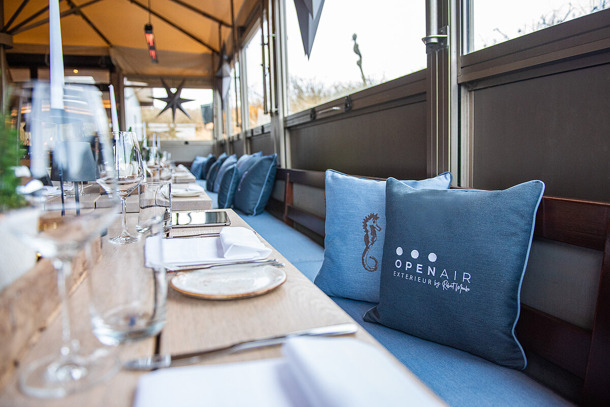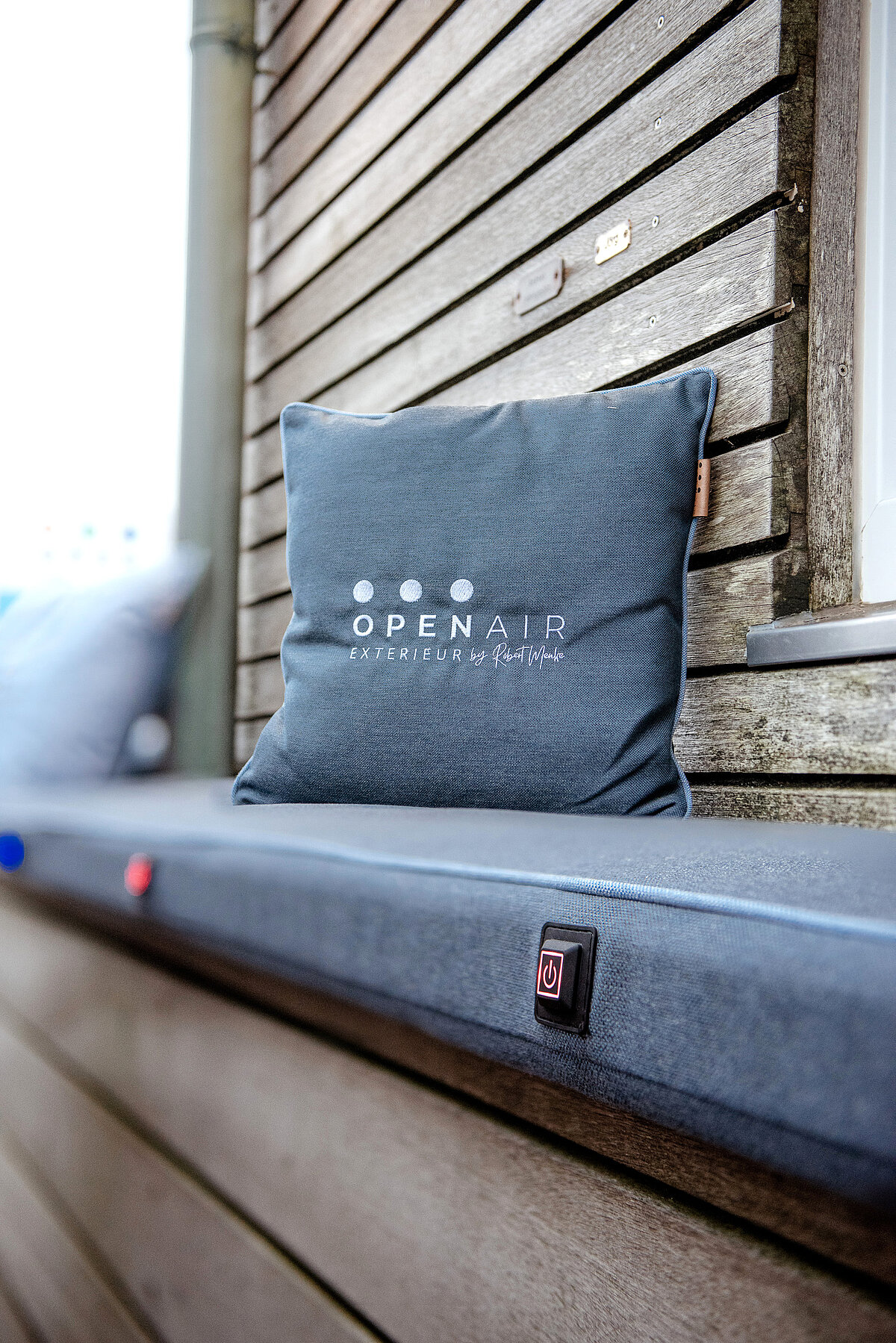 Ergänzend zur Strahlungswärme sorgen beheizbare Sitzkissen von Open Air für zusätzlichen Komfort – besonders in den Übergangszeiten und an kühlen Abenden.